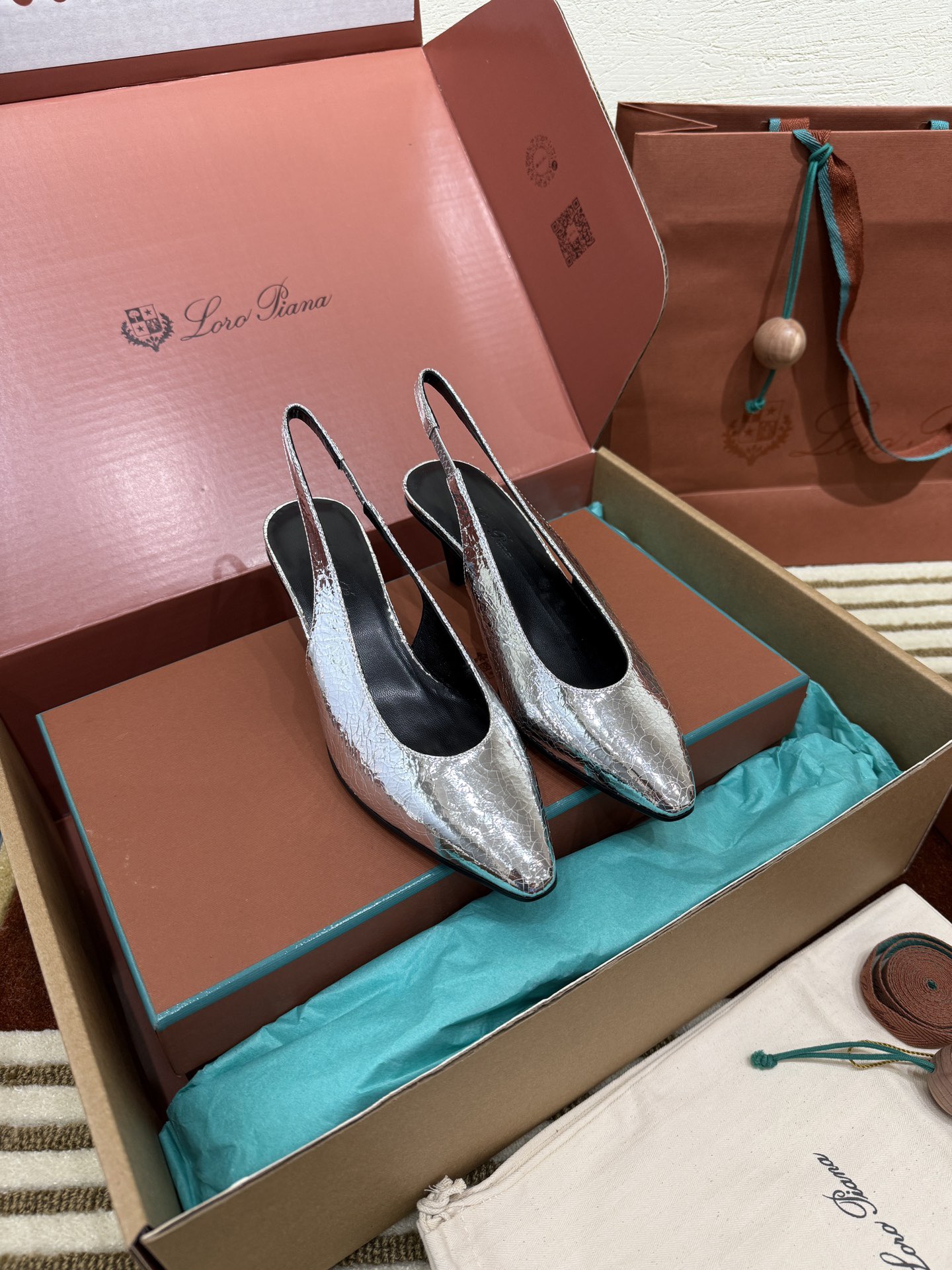 Loropiana Leather Sling Back Pumps